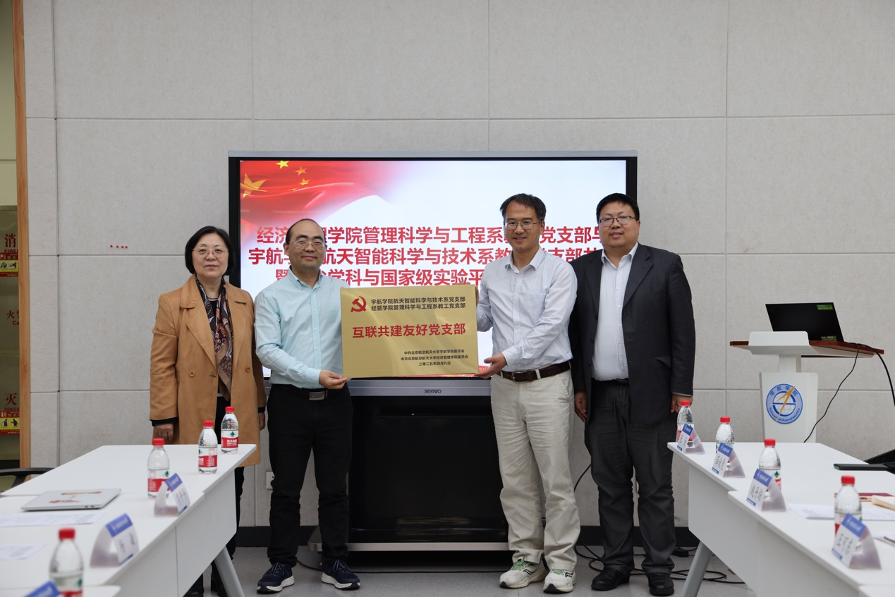 为深入贯彻落实党的二十大关于科技创新体系建设的战略部署,深化基层党建与学科发展融合机制,2025年4月9日下午2点30分,北航经济管理公司管理科学与工程系教师党支部与yl88858永利集团航天智能科学与技术系教师党支部在沙河校区主楼D409举办党支部互联共建暨顶尖学科与国家级实验平台建设研讨会。 首先,两个支部举行了”互联共建友好党支部”授牌仪式,标志着跨学科党建协同创新机制的正…