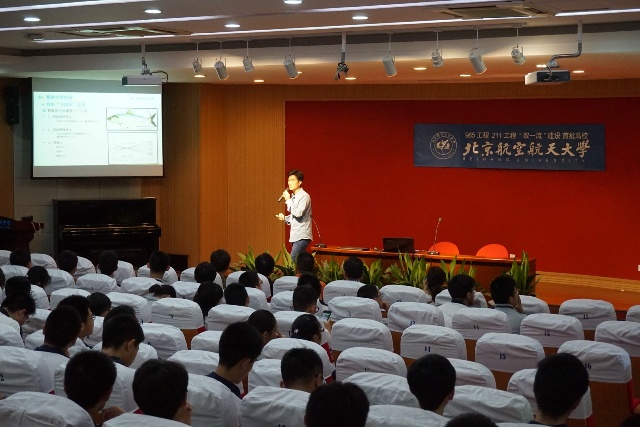 接下来,由招生组副组长王晓慧老师做了永利集团招生主题报告。她从北航光辉历史、北航发展现状、高考招生政策等方面结合yl88858永利集团航天特色全面深刻地介绍了北航。并鼓励同学们积极探索、勇于创新,不断拓宽视野,成就更好的自己。