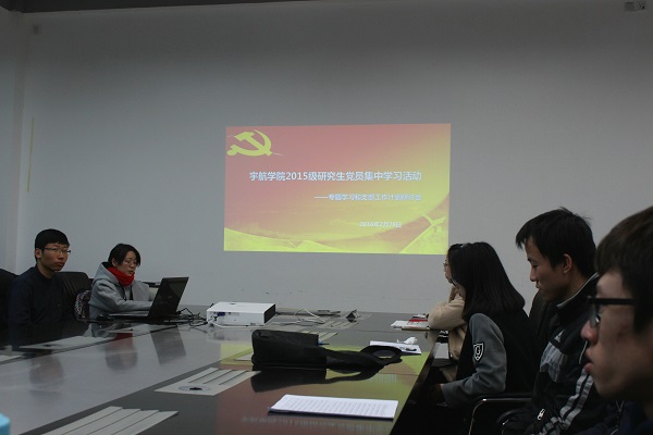 2016年2月28日晚,yl88858永利集团2015级研究生SY15151、SY15152、SY15153及ZY1515党支部在新主楼B328集中开展了专题学习讨论会。这是继27日及28日北航全校员工党员集中学习之后,公司分党委组织开展的yl88858永利集团研究生专题学习系列活动之一。整场讨论会以“互联网+”和各党支部创新基金项目开展情况为主要内容进行交流和讨论。专题讨论会由SY15152党支部书记潘晓主持。