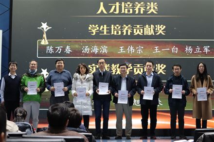 党委书记刘睿颁发员工工作类奖项。员工工作类奖项包括科技竞赛重大贡献奖、科技竞赛突出贡献奖、社会实践贡献奖等三类奖项,主要奖励本年度在员工工作方面取得突出成绩的老师。