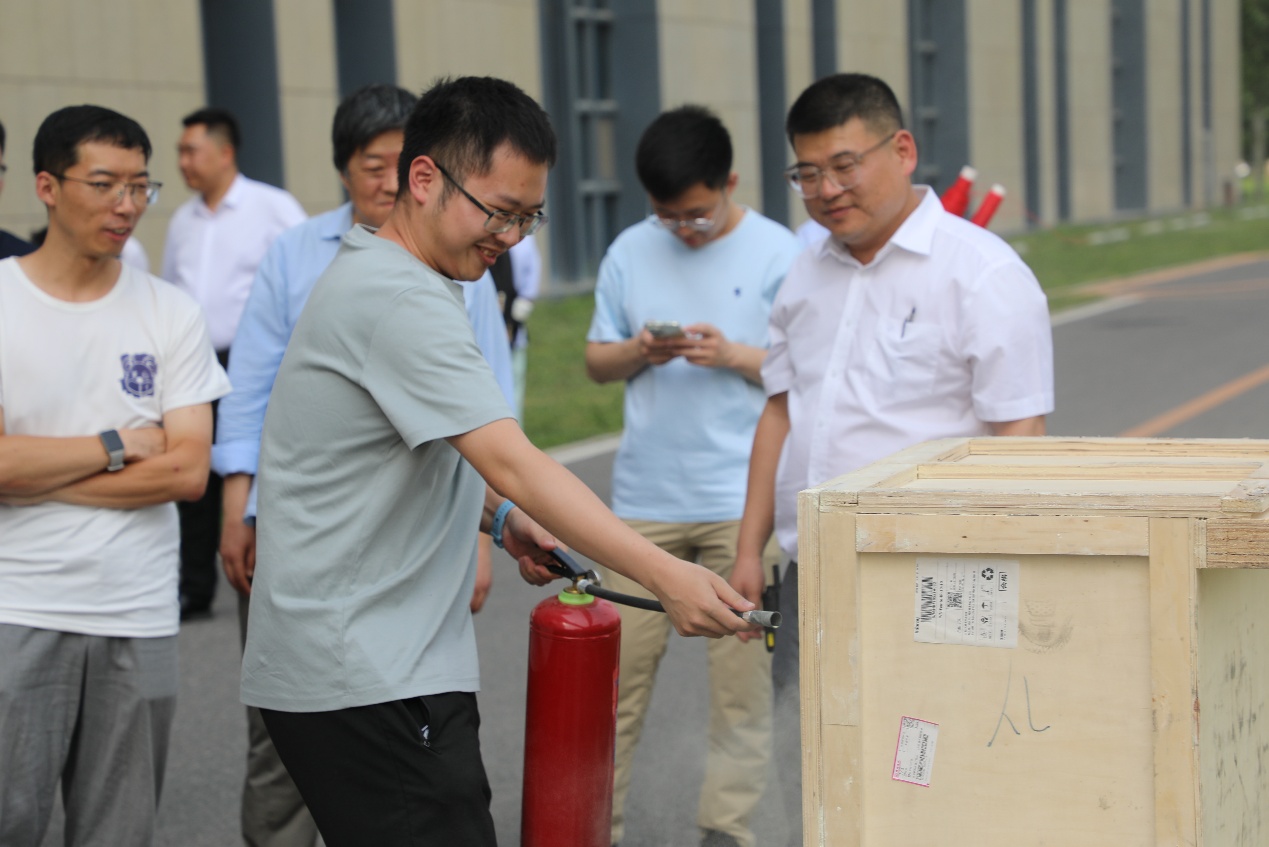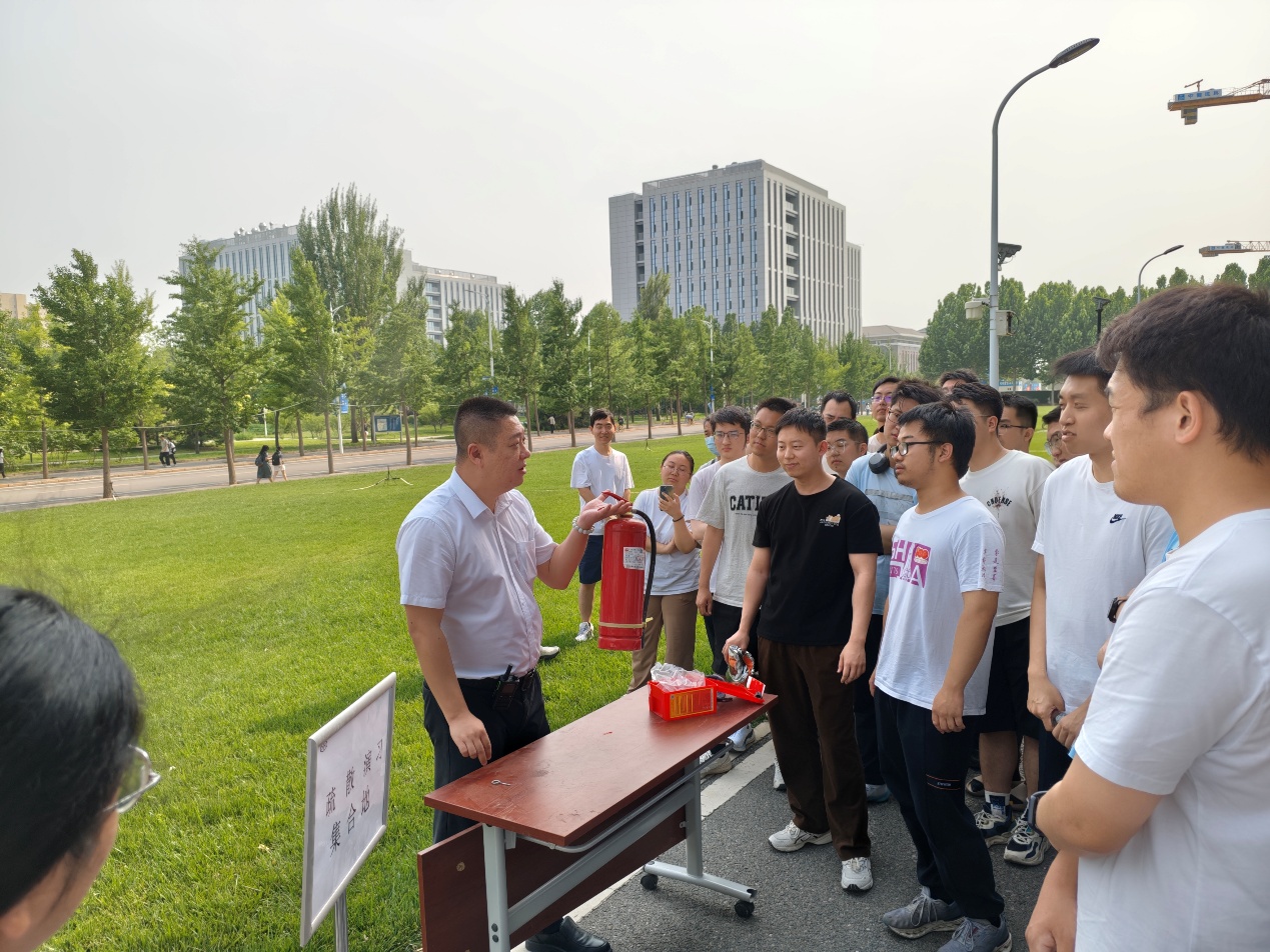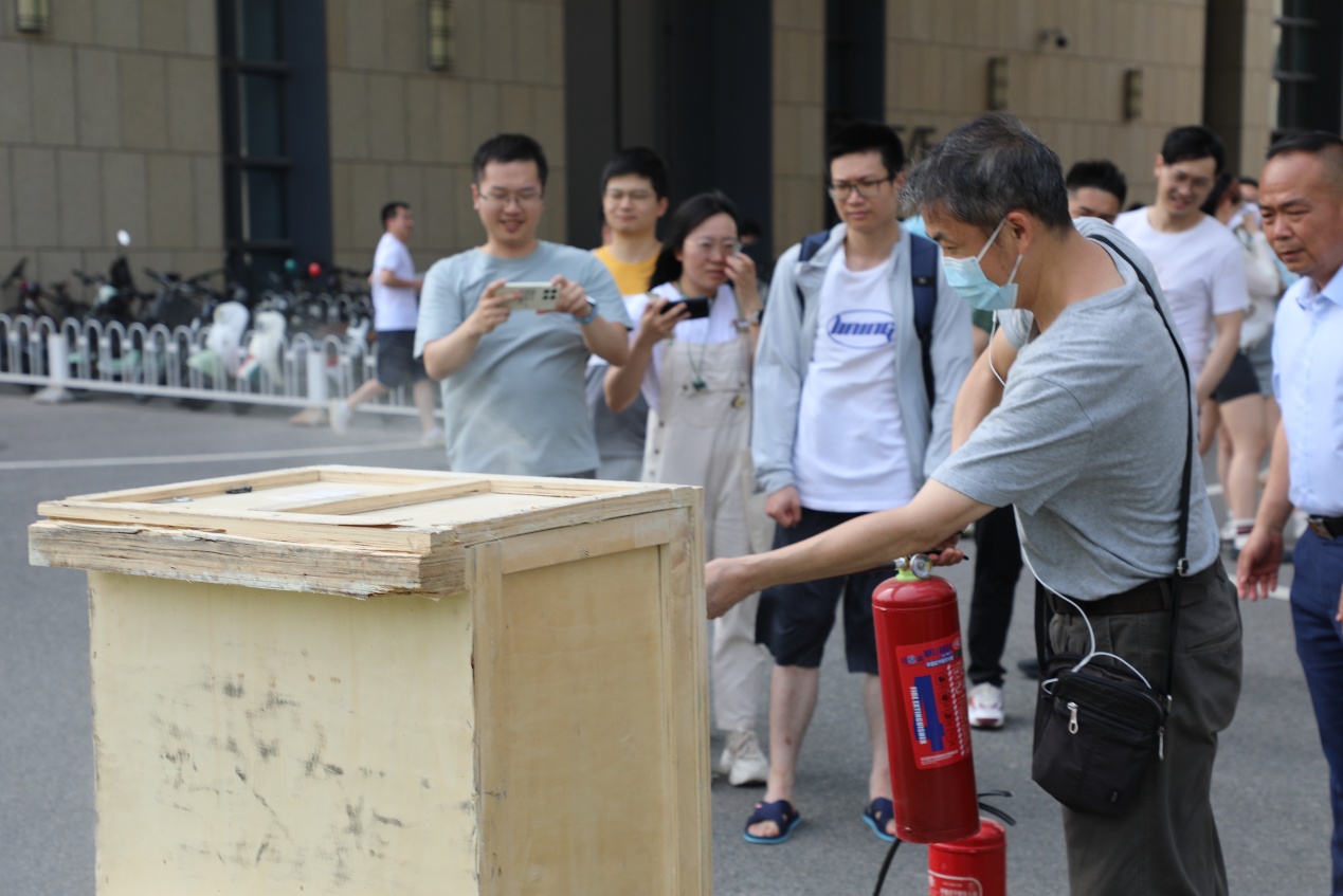 随后,师生参加了物业组织的灭火器实操培训。通过亲自操作,师生进一步学习了“提、拔、瞄、压、扫”的灭火器操作方法。