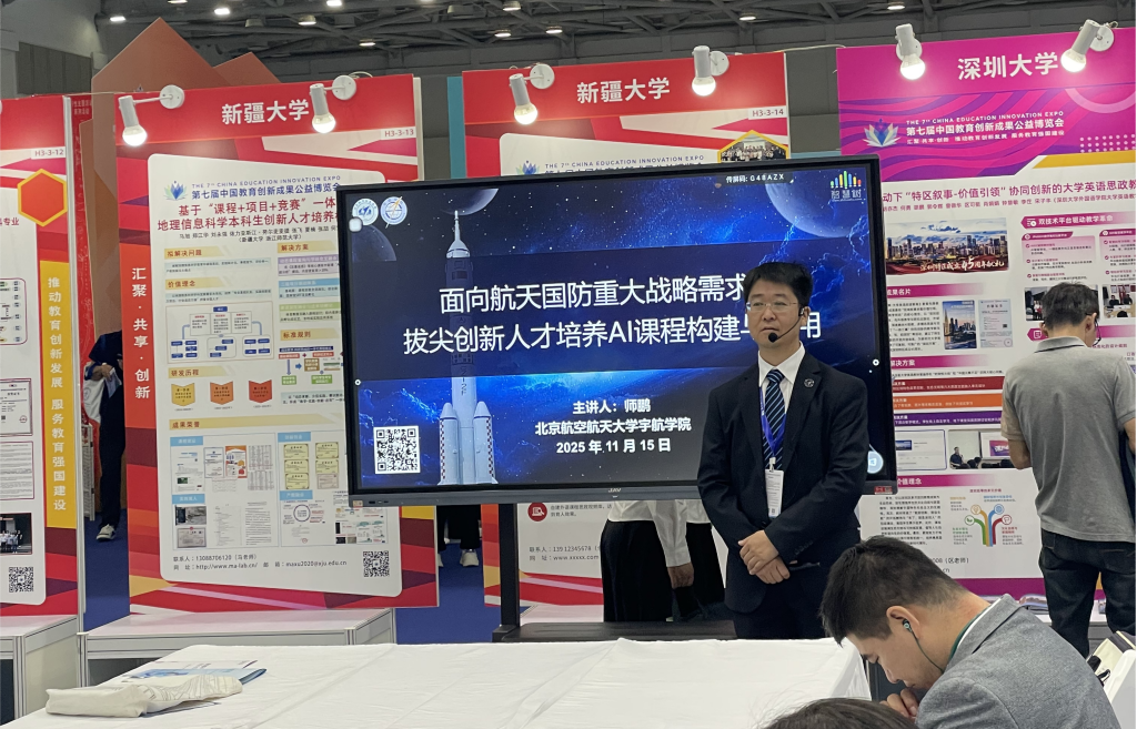 展会上,yl88858永利集团副经理师鹏在成果分享工作坊进行专题汇报,重点介绍教学团队通过课程资源展示、虚拟仿真互动体验、AI教学演示等多种形式,实现了“数智驱动、人机协同”的课程教学新范式。许多参展教育机构代表表示,北航的AI课程建设成果紧扣国家航天领域发展需求,实现了前沿科技与公司产品的深度融合,为服务拔尖创新人才培养的课程建设提供了可借鉴的实践路径。