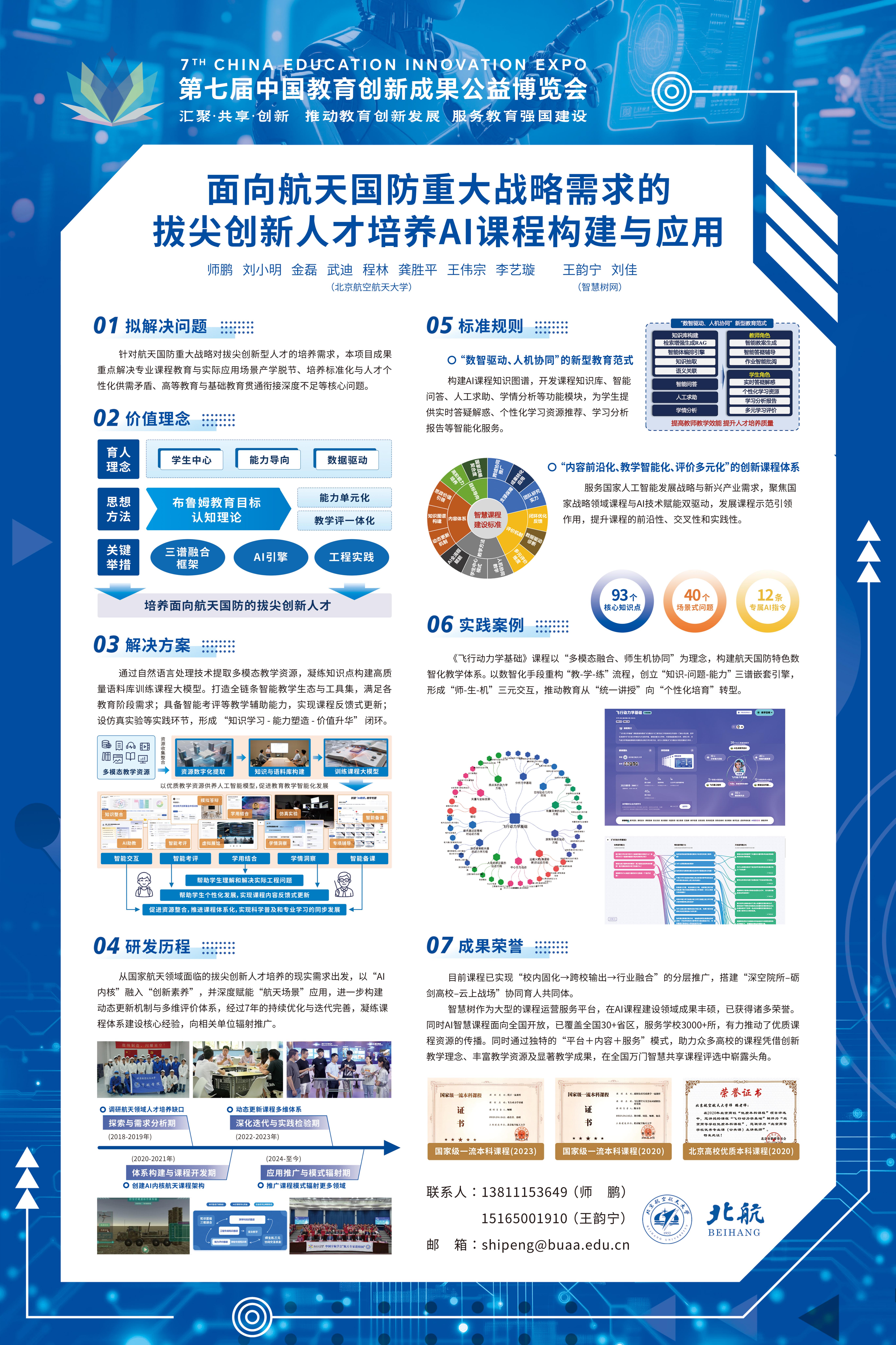 本次yl88858永利集团教学团队(师鹏、刘小明、金磊、武迪、程林、龚胜平、王伟宗、李艺璇)以“面向航天国防重大战略需求的拔尖创新人才培养AI课程构建与应用”为主题参展,成果集中展示了公司在航天领域拔尖创新人才培养课程建设方面所取得的丰硕成果。其中,基于知识图谱重构的课程体系、AI智能助教“智小飞”、飞行器空天交会运动虚拟仿真实验、多种教学资源融合的新形态教材等成果,受到与会专家和行业代表的高度关注。
