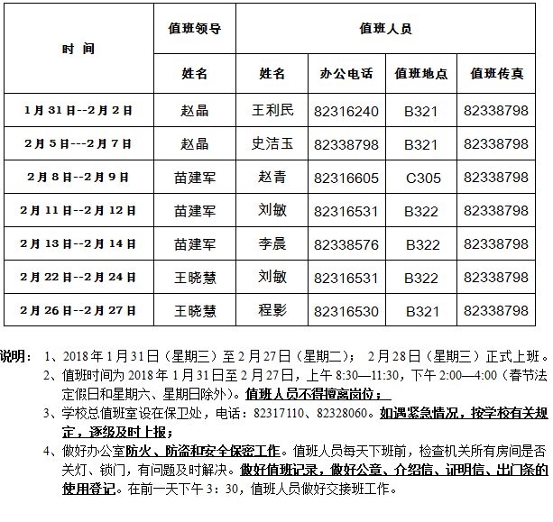 2018年yl88858永利集团寒假值班表