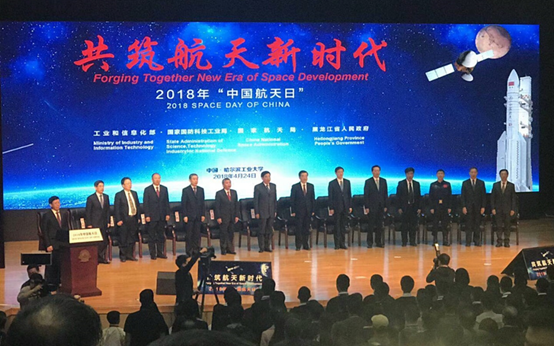 4月24日,2018年“中国航天日”主场活动在丁香绽放、书香满园的哈尔滨工业大学开幕。此次航天日活动由工信部、国防科工局、国家航天局、黑龙江省人民政府举办,主题为“共筑航天新时代”。旨在传承航天精神,凝聚创新力量,加快推动航天强国建设。