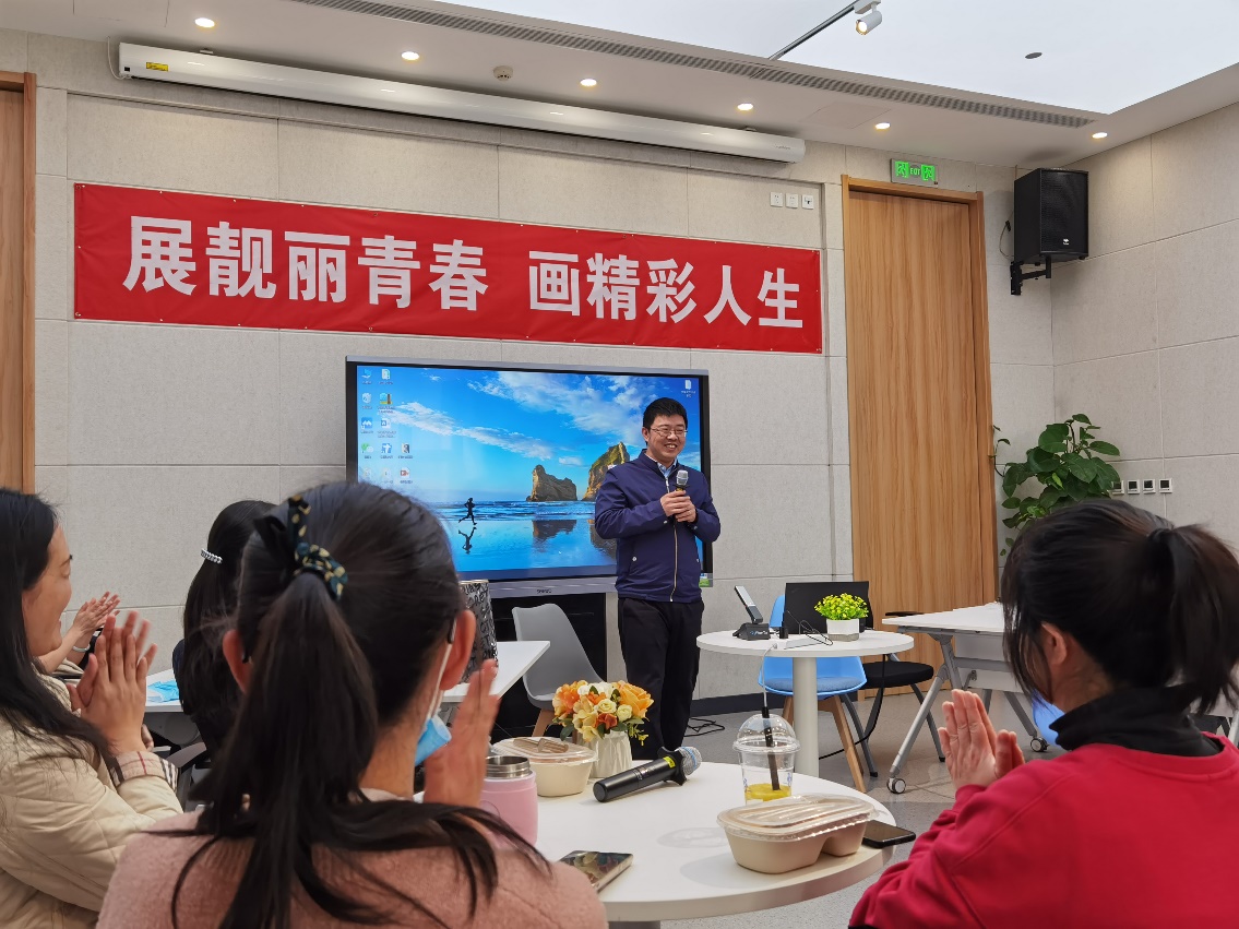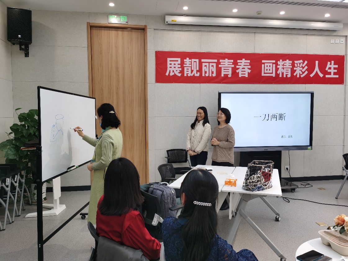 活动伊始,公司党委书记刘睿代表公司向全体女教职工表达了诚挚的祝福,感谢女教职工在公司各项工作中所做出的努力和成就。联谊活动以引人入胜的----“猜猜她是谁”的环节展开,精致典雅的古风装扮、昔日靓丽年轻的身影,甚至珍贵的儿时模样都一一展现在大屏幕上,欢声笑语中老师们竞猜着“她是谁”。新颖的活动形式激起了老师们参与的热情,而随着照片不断被猜中,对美好时光的回忆渐渐拉近了老师们的心。随后,进入美容护肤现场讲座环节。始终美丽在线的袁丁老师讲解了美容护肤的基本流程和注意事项,现场展示了化妆的步骤。看着袁老师从素颜到最终精致妆容的变化,老师们都由衷赞叹化妆的神奇,也激起了大家学习化妆,展示美丽容颜的热情。最后的游戏环节“你画我猜”将整个庆祝活动的热烈氛围推向了高潮,人人参与其中,画和猜的过程欢声笑语不断。