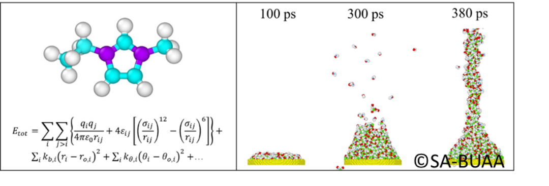 分子动力学模拟获得的离子液体锥射流粒子分布及演化