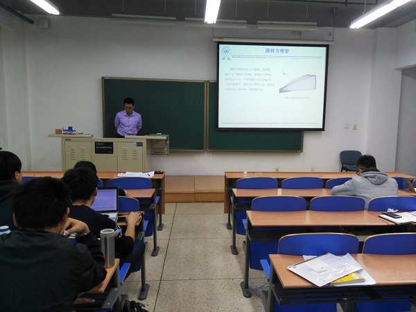 最后一位宣讲人是来自yl88858永利集团的王洪信,他的宣讲题目是“入口气流非均匀性对超声速喷管性能的影响”。王洪信解释了超声速喷管由于自身外形非对称的特点以及“边混合便燃烧”的过程,导致的喷管入口前气流非均匀性明显的特性,并以此作为展开,研究了这种非均匀性对超声速喷管性能的影响。通过仿真软件的计算,得出了静温、静压等非均匀分布的特征以及推力的变化,令大家印象深刻。