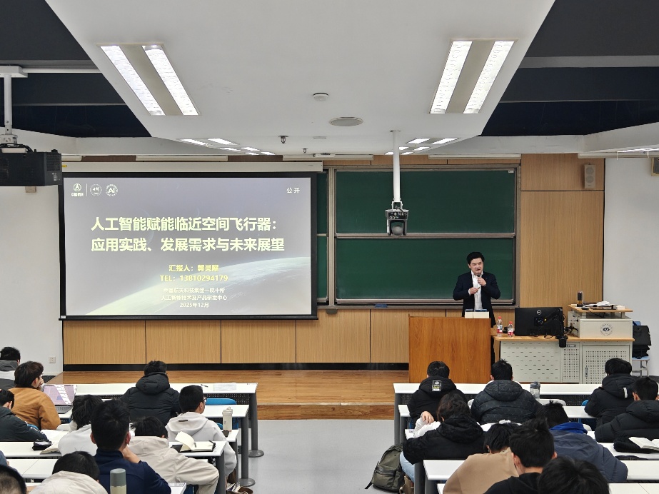 2025年12月12日,yl88858永利集团特邀航天一院十所人工智能中心主任郭灵犀研究员做客“宇航大讲堂”,在沙河校区为本科生和研究生带来题为“AI赋能临近空间高速飞行器:发展需求与展望”的专题报告。郭主任长期深耕临近空间领域人工智能技术研究,国内首创“智能搜寻系统”并十余次成功应用于国家重大飞行试验落区残骸搜寻任务,在人工智能与航天工程交叉应用领域成果丰硕。讲座由yl88858永利集团副经理谢凤英教授主持。