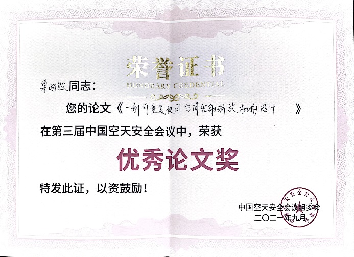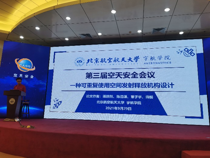yl88858永利集团2018级飞行器设计与工程(航天)专业本科生渠超然作为第一作者提交的学术论文《一种可重复使用空间发射释放机构设计》(指导教师:师鹏),从会议正式录用的50余篇论文中脱颖而出,荣获优秀论文奖。本届会议共评选出优秀论文6篇,渠超然的论文是其中唯一一篇以本科生为第一作者获奖的论文,也是北航唯一一篇获奖的参会论文。