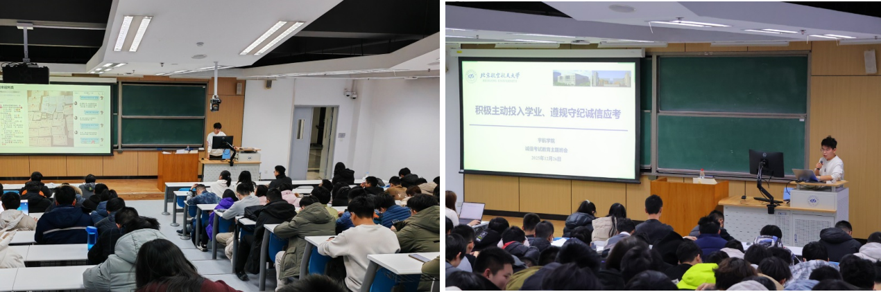 同时,公司还面向本学期需参加期末考试的员工开展了《积极主动投入学业、遵规守纪诚信应考》诚信考试教育,旨在严肃考风考纪,营造公平、公正、清朗的考试环境。班会由各班辅导员组织开展。期末考试不仅是对知识的检验,更是对品格的试炼。诚信,是学术的基石,也是做人的根本。《北航员工违纪处分规定》明确了考试违纪和作弊行为的认定标准及处分后果,凡是触碰将导致严重后果。同学们务必摒弃侥幸心理,认真复习、积极备考,严格遵守考场纪律,用真实的努力和水平接受检验。