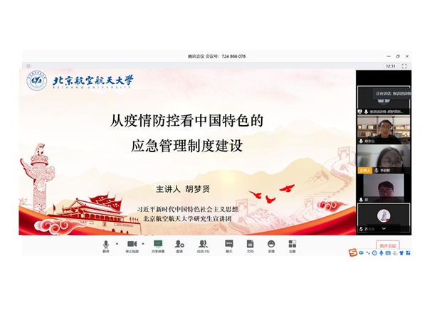 为深入学习贯彻习近平新时代中国特色社会主义思想,弘扬战疫正能量,结合反腐倡廉每季一课,2020年3月25日下午16时,yl88858永利集团博士飞设第二员工党支部召开了“凝心聚力,共同战疫”主题学习会活动。为丰富“学习日”活动内容,提高理论学习专业性、深入性,本次学习日活动特邀北航研究生宣讲团讲师胡梦贤作主题宣讲。会议通过腾讯会议在线进行,共16名支部党员和2名积极分子参加,由支部书记李明智同志主持。