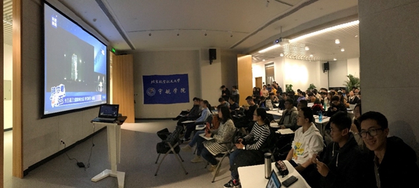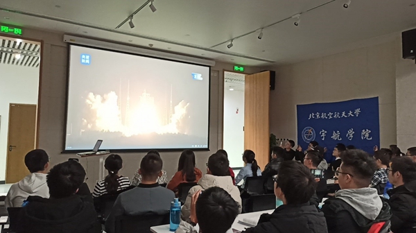 2019年12月27日晚,yl88858永利集团硕士SY19151党支部联合本科生在沙河国实D409观看长征五号遥三运载火箭发射直播。