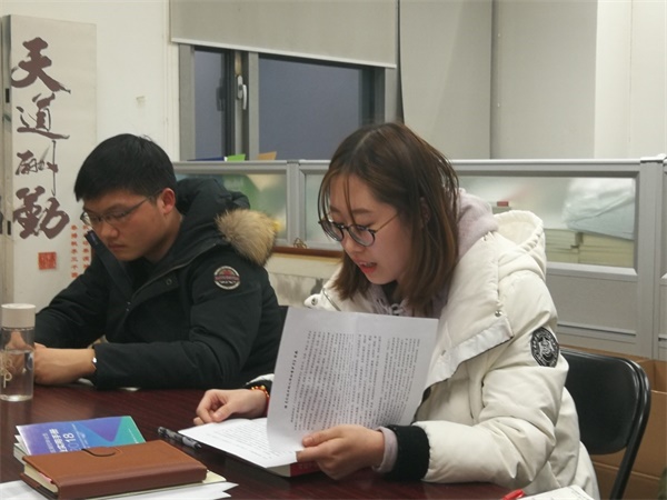 2019年2月23日晚八点,yl88858永利集团ZY18151党支部在新主楼B326召开了寒假学习读书交流会。会议由梁炫烨同志主持,18级辅导员牛冲同志出席,应到党员8人,与会7人,请假1人。