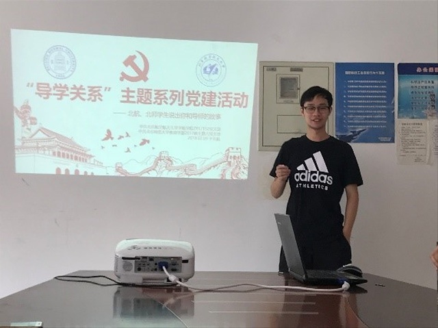 本次活动有5名北航的支部成员和4名北师的支部成员参见,大家一开始在新主楼B919展开了对“导学关系”的讨论。党员同志们根据自身的情况,叙述了自己和导师之间的故事,说明导师在平时生活中是如何指导、教育、启迪我们的。会议在潘若剑同志的主持下展开。