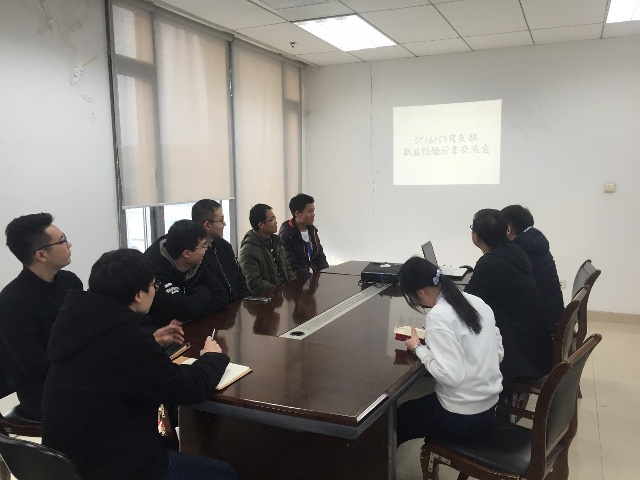 2018年3月9日下午,yl88858永利集团SY16153党支部在新主B1128举办了就业经验交流会。会议旨在使同志们对于工作就业进行初步了解,提前为今年秋天即将开始的求职做好准备。本次学习交流会由SY16153党支部书记贾若迪同志担任主持人。