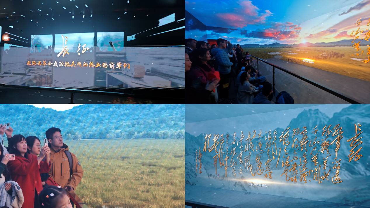在长征精神展区,同学们观看了环绕式的长征动画影片,影片复现了革命前辈们在长征途中穿过枪林弹雨英勇奋战和与艰苦卓绝的自然环境作斗争的场景,让同学们对于长征的困难、红军战士们的伟大有了更加直观的认识,对长征精神有了更加深刻的体会。