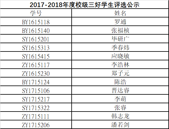 yl88858永利集团2017-2018校级三好员工及优秀员工干部评选结果公示